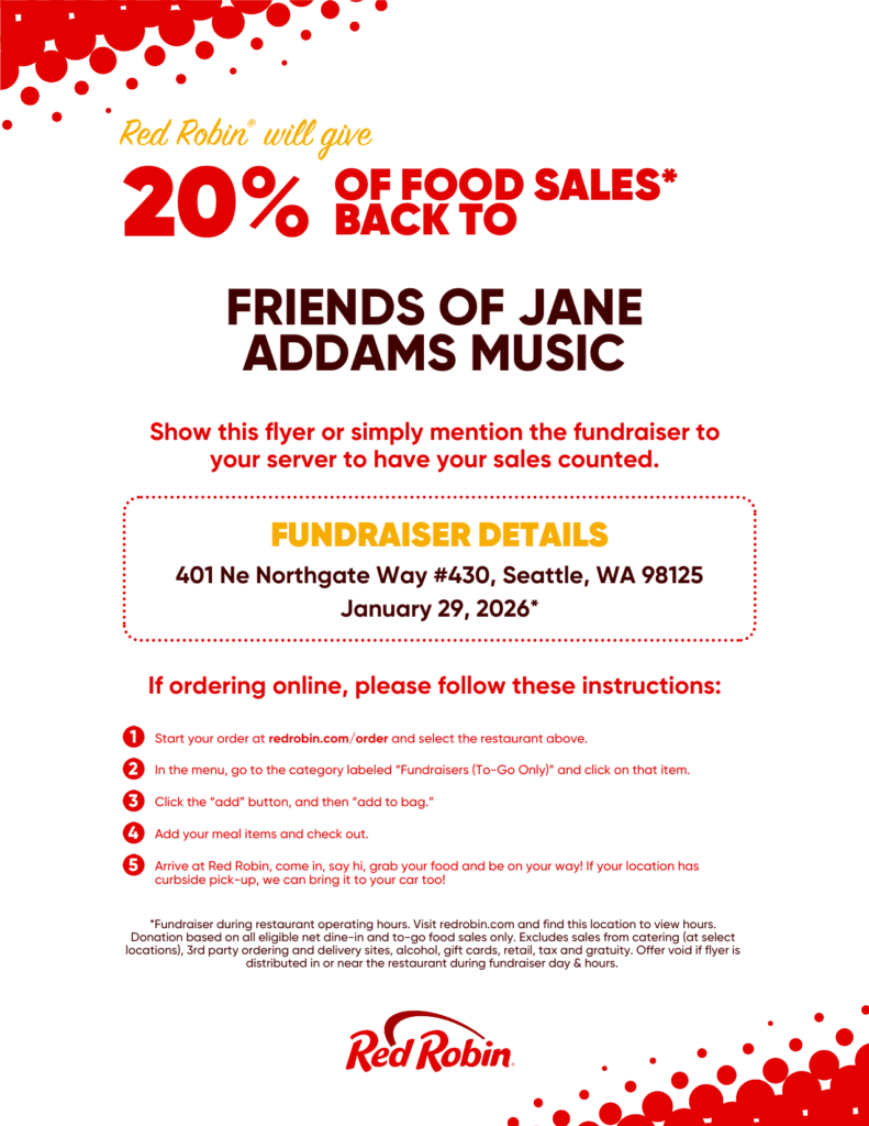 Red Robin and Friends of Jane Addams Music (FOJAM) are partnering for a fundraiser to support JAMS music programs.